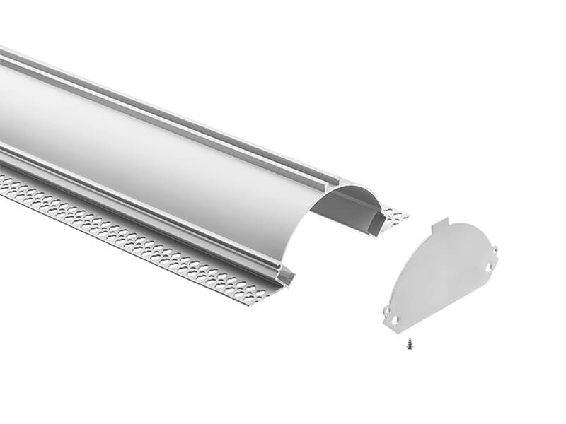A plaster-in aluminium profile featuring a full semi-circular form for recessed installation into plasterboard ceilings. Its curved structure supports dual light sources, producing broad, diffused illumination with a flush, frameless finish. Ideal for architectural applications in residential and commercial interiors where sculptural, built-in lighting is desired.